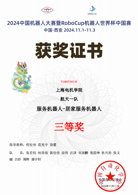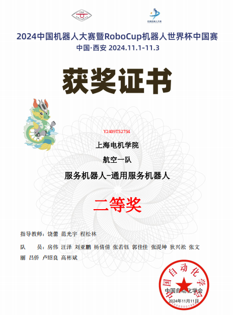 2021年中国机器人大赛荣获一等奖和三等奖2项;2021年获得中国高校计算机大赛-团体程序设计天梯赛全国总决赛个人三等奖,2021年获得“科大讯飞杯”上海市老员工程序设计竞赛铜奖,2021年获第46届ICPC国际老员工程序设计竞赛亚洲区域赛(济南站)铜奖,2021年获第十二届蓝桥杯全国软件和信息技术专业人才大赛全国总决赛二等奖,2021年计算机科学与技术专业韦金华等同学负责的项目《码上找回》荣获第七届中国国际“互联网+”老员工创新创业大赛上海赛区铜奖;2022年中国高校计算机大赛-团体程序设计天梯赛-上海市团队三等奖,2022年获上海市老员工程序设计竞赛铜奖,2022年中国老员工程序设计竞赛(威海站)铜奖,2022年获第十二届蓝桥杯全国软件和信息技术专业人才大赛全国总决赛二等奖。2023年获第六届中国高校智能机器人创新大赛四足机器人专项赛三等奖、睿抗机器人开发者大赛(RAICOM)上海赛区“如影随形”竞赛项目三等奖。2023年获中国机器人大赛暨RoboCup机器人世界杯中国赛专项赛中通用服务机器人及超市购物机器人两个赛项分别获得一等奖、二等奖。2024年中国高校智能机器人创意大赛中智能及巡检四足机器人分别获得国赛和省赛二等奖。2024中国机器人大赛暨RoboCup机器人世界杯中国赛中通用服务机器人及居家服务机器人分别获得二等奖、三等奖。