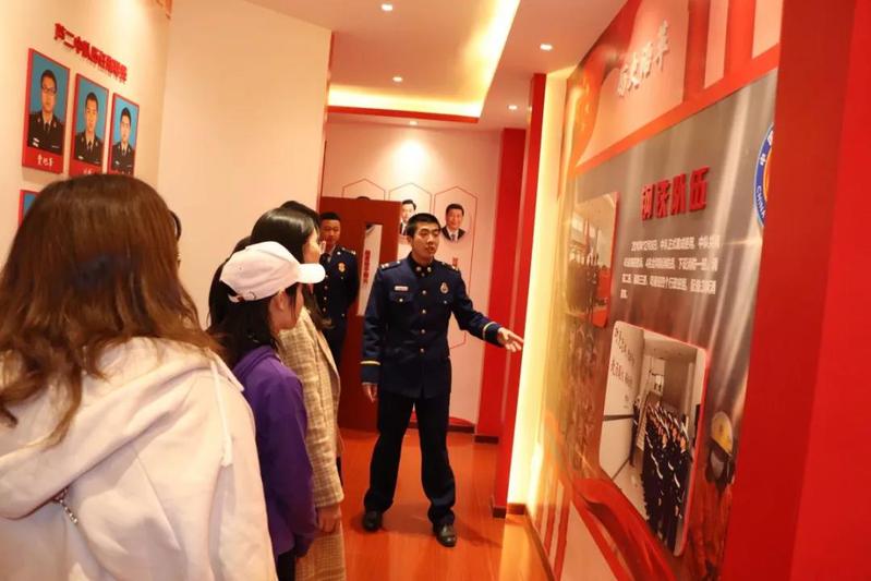 之后消防班班长带领同学们走上二楼住宿、学习区,更近距离了解了消防员们的日常生活。在三楼的荣誉室中,满是他们奋不顾身冲在救火第一线的英姿,百姓们赠送的充满感激的锦旗以及芦二中队全体消防员在各个大大小小比赛项目中活动的奖状与荣誉。