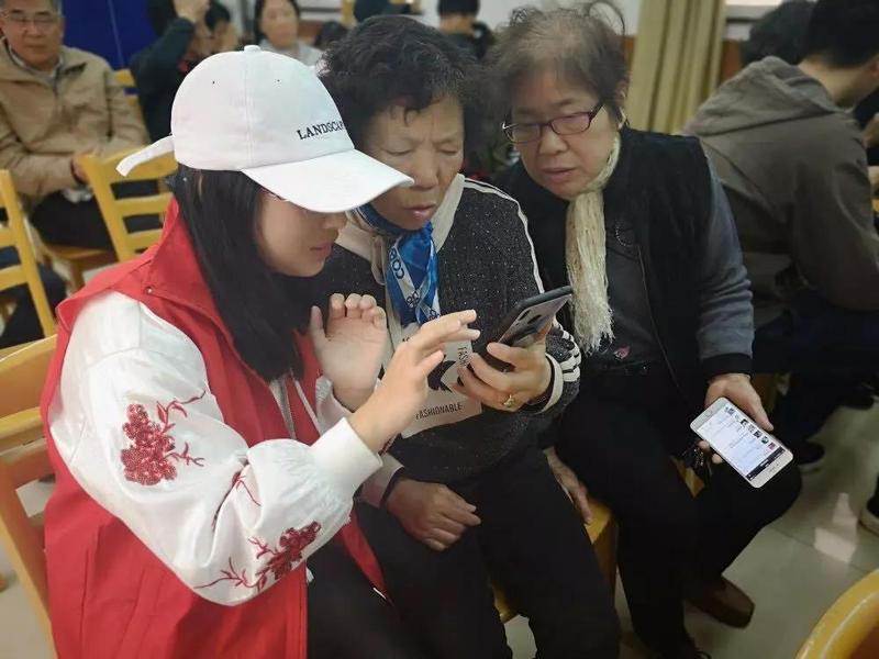 在活动过程中,志愿者们主要为社区老年人介绍了日常生活应用频率较高的美图秀秀、高德地图、支付宝及微信等软件的部分功能。在年轻人眼中简单易学的操作,在老人们心里却有太多的疑问与困惑。老员工志愿者细心地为老人答疑解惑,把自己所知所学及使用技巧手把手、一对一的与现场老人结对教学。
