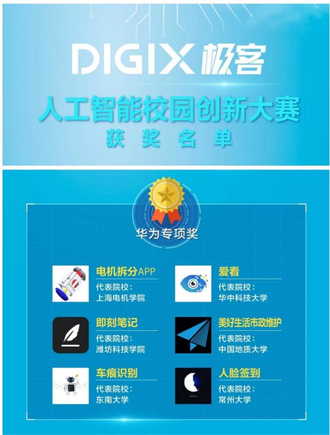 校园开发者有理论知识和创意想法,渴望商业实战经验及专业技术指导。而DIGIX极客校园人工智能双赛不仅有华为及江苏省人工智能学会提供实战指导,更有华为提供强大的算力资源和应用开发平台的支持。校园开发者是校园极客生态圈的核心力量,更是华为移动服务生态的生力军,竞赛获奖者被华为公司列入就业及实习候选名单,华为将携手开发者共筑全场景智慧新生态。(宋晓勇)