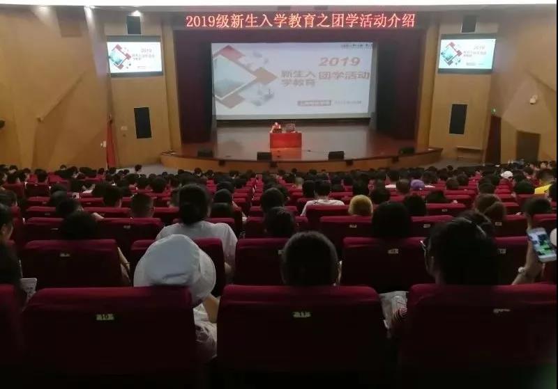 8月25日上午,同学们在小剧场参加2019级新生入学教育之团学活动介绍的讲座。