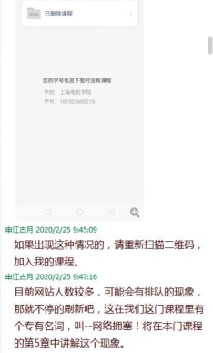 在2月24日,公司开展学习通平台测试的时候,由于系统突然访问量激增,好多同学登陆平台后,没有对应课程,甚至无法登陆。胡静老师正好利用这一现象,在QQ辅导答疑群里,生动形象地向员工们解释和引入了课程将要学习到的“网络拥塞”基本概念,引导他们以专业的眼光来理解和掌握生活中遇到的网络现象,激发其学习的热情与兴趣。