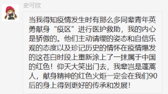 录制了一段视频,言语间表达出青年一代的民族自豪感和坚决打赢疫情防控阻击的信心和决心。