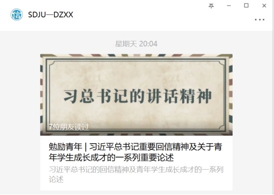 公司官方微信公众号也特别推出《习近平总书记重要回信精神及关于青年员工成长成才的一系列重要论述》。