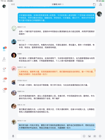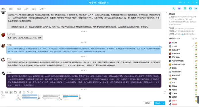 各班级辅导员老师依托QQ群、腾讯会议等平台,召开线上主题班会,通过公司微信公众号、“学习强国”央视网相关资料积极引导员工深入学习讨论总书记回信精神及关于青年员工成长成才的一系列重要论述,深刻理解核心要义和内涵,分享青年员工的责任、使命和担当。