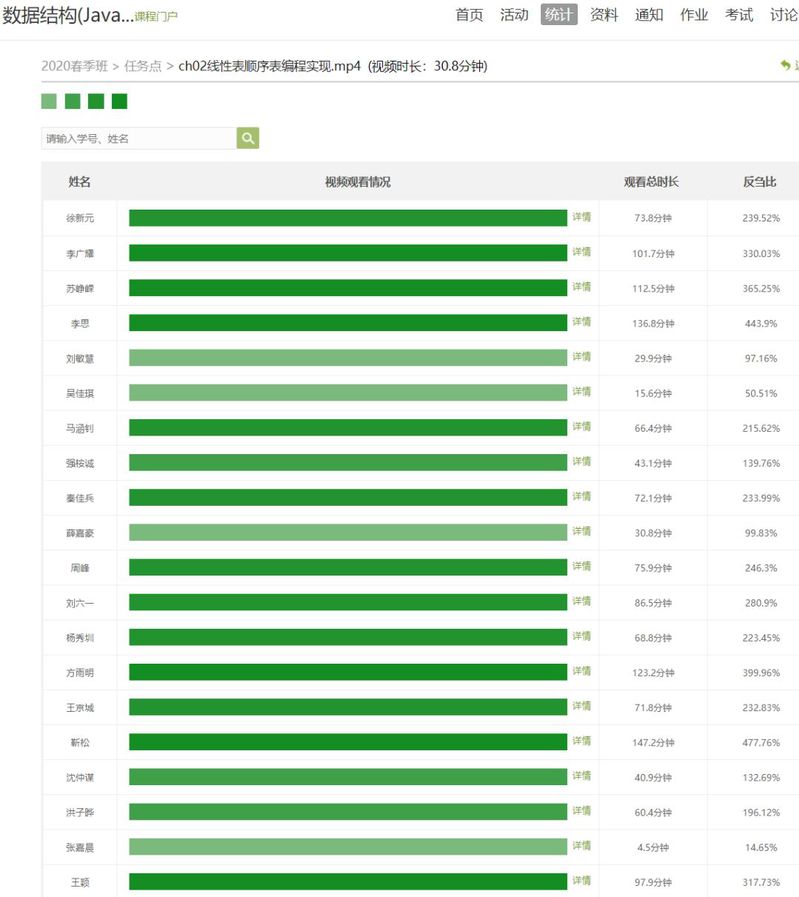 蔡教授讲到,超星后台统计中的反刍比显示绝大部分员工会反复观看录播视频,对于半小时的编程实现视频,许多员工投入了1个小时至2个小时的学习时长,反刍比在200%-400%,这些数据表明同学们在经过2至4遍的重复观看学习,便能够切实掌握编程的知识要点。