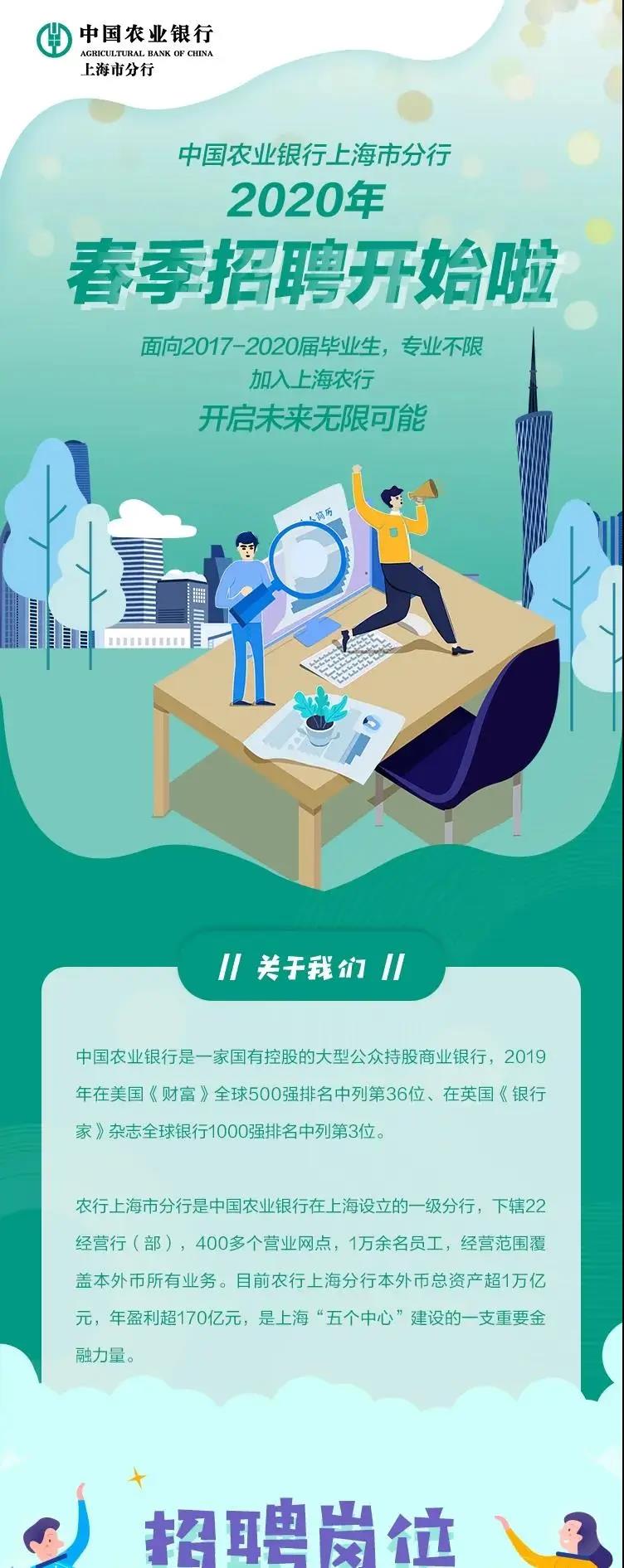 就业讯息 | 中国农业银行上海市分行2020年春季招聘