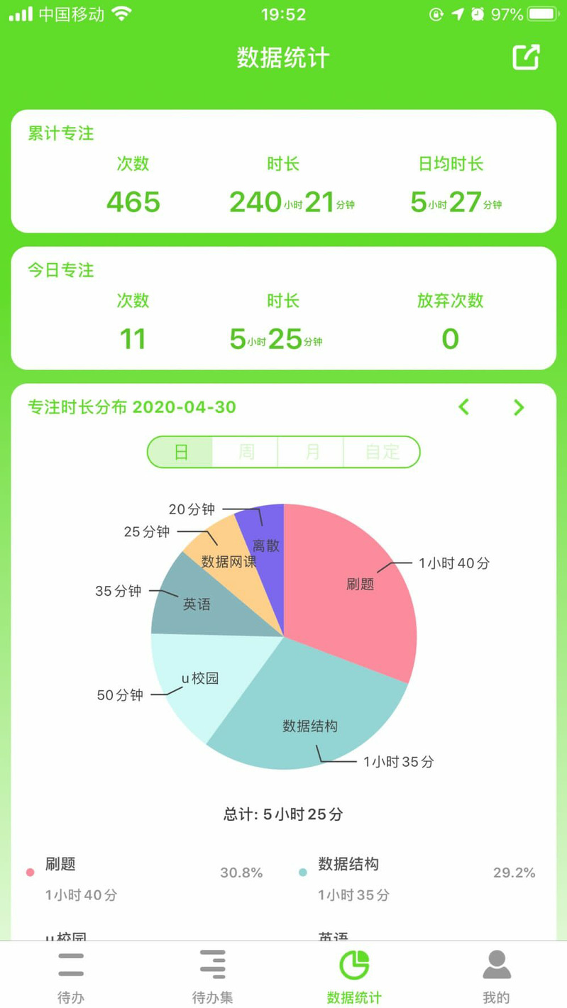 但在公司学业指导中心推出这个活动下载了番茄app后,各个娱乐软件不被使用,坐着也是坐着,就开始慢慢学习。刚开始只能坚持一两个小时,慢慢会自觉学习。这个活动给我最大的帮助就是从刚开始的督促学习逐渐转化为自主学习,很大程度上提高了我的学习效率。谢谢!