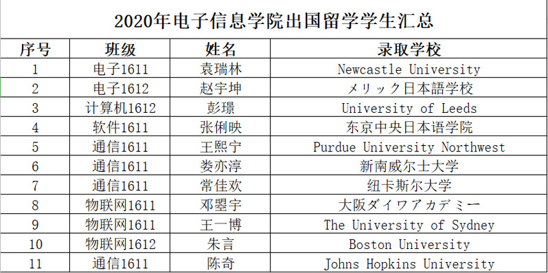 402永利集团2020届共计毕业生530人,其中涌现出一批勤奋刻苦、追求梦想、敢于挑战、砥砺奋进的优秀学子。2020届公司毕业生升学取得可喜成绩,国内外升学深造录取率创历史新高。考取硕士研究生29人,国外升学11人,升学率达7.55%,较2019年同期,增幅达53.85%。其中10名同学被复旦大学、中央民族大学、中国科学技术大学、上海大学、华南师范大学、南京信息工程大学、华东理工大学、河北工业大学等“双一流”高校录取。