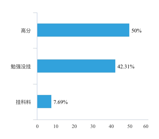 其次,在线上学业情况的调查下,该团队发现百分之九十左右的同学能够顺利通过考试并且一半的同学可以取得高分。