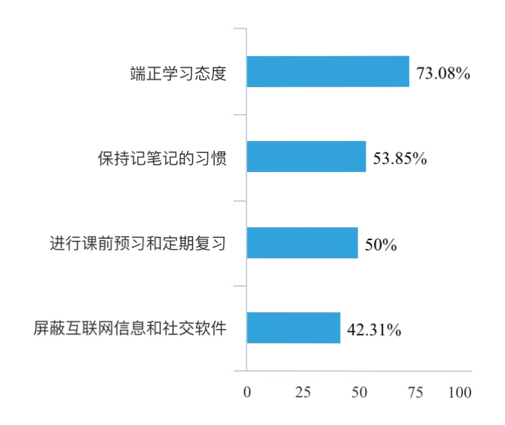 该团队在解决与改进方案方面也进行了较为充足的调查,大家认为适宜学习的安静环境、老师与同学间的互动可以提高网上授课的学习效率;其次,在同学们的上课方法与老师的授课方式等方面都提出了相对应的改进方案。