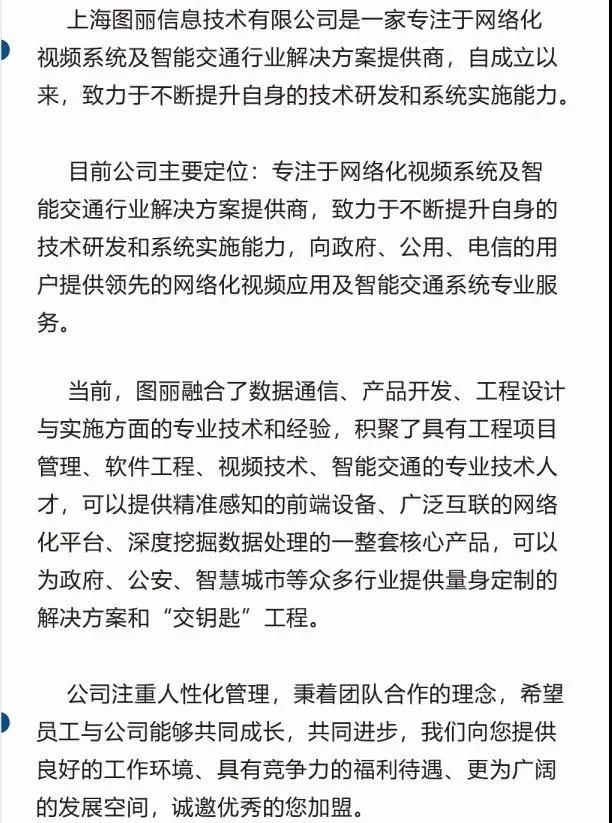 就业讯息 | 上海图丽信息技术有限公司招聘简章