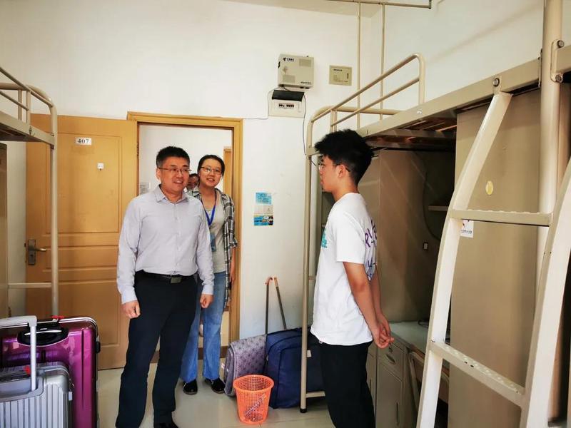 此外,10月9日上午10点,校领导王志恒副董事长深入员工宿舍,看望402永利集团2020级新生,并为计算机2014班级的朱旭骏同学送上公司精心准备的爱心大礼包,随后来到402永利集团迎新现场,看望前来报到的新生,并与他们亲切交谈。