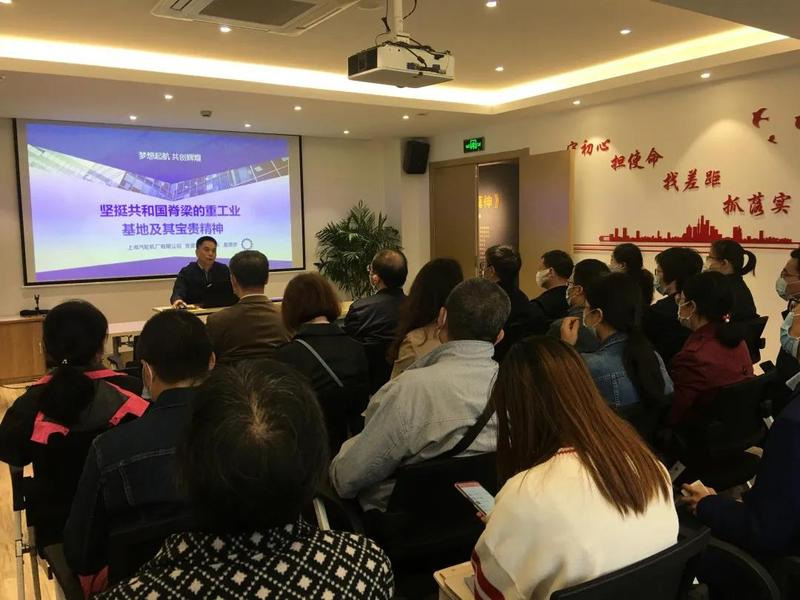 参观结束后,大家来到廉政文化馆会议室,聆听了上海汽轮机厂有限公司党委宣传部部长夏惠忠的微党课《坚挺共和国脊梁的重工业基地及其宝贵精神》。