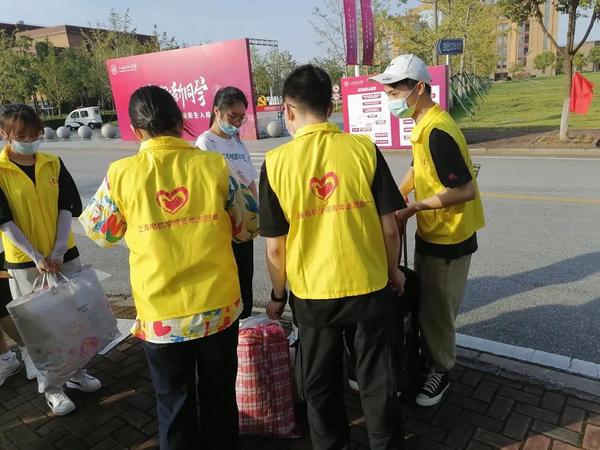 迎接同学们的是热情的志愿者们