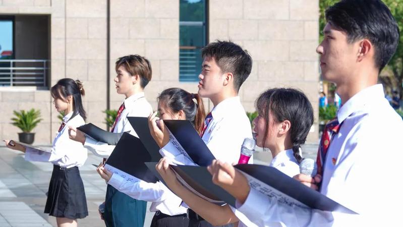 上午8时,升旗仪式在老员工艺术团演唱的一首《红旗飘飘》中拉开帷幕。升旗手们护卫着鲜艳的五星红旗入场,他们着装整齐、步伐矫健。现场师生在会林广场前整齐列队,伴随着雄壮的《义勇军进行曲》响彻校园,向鲜艳的五星红旗致以庄严的注目礼,共同为祖国送上诚挚的生日祝福,也为中国共产党成立100周年献礼。