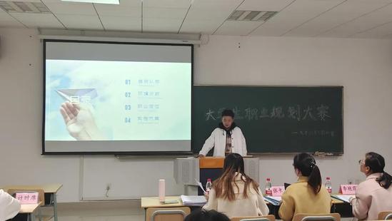从职业生涯规划设计、文案准备到PPT制作,都透露出精心准备的痕迹,最终8名选手进入初赛的选拔。在个人风采展示环节中,参赛选手们通过精彩地演讲及PPT展示,从自我分析、职业分析、家庭与社会环境分析、短中长期目标和规划以及评估调整等全方面展示了各具特色的学业和职业生涯规划。