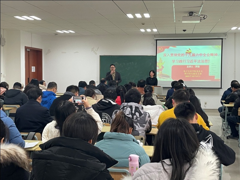 12月17日下午,公司党总支和图书馆直属党支部在信息楼201邀请马克思主义公司副教授罗薇作《深入贯彻党的十九届六中全会精神,学习践行习近平法治思想》专题报告。罗薇从习近平法治思想的提出,习近平法治思想的形成,习近平法治思想的核心要义,坚持全民推进科学立法、严格执法、公正司法、全民守法等四个方面,结合丰富的案例,对习近平法治思想的内涵和核心作了宣讲和解读。本次讲座深入浅出,与会党员纷纷表示,讲座非常及时、非常解渴,讲座对深入贯彻党的十九届六中全会精神和学习理解习近平新时代中国特色社会主义法治思想的深刻内涵和核心要义很有帮助。作为高公司党员教师,一定要带头学习贯彻习近平新时代中国特色社会主义法治思想,自觉将法治思想体现到具体工作中,融入到日常行为里,做新时代法治思想的忠实崇尚者、自觉遵守者和坚决捍卫者。