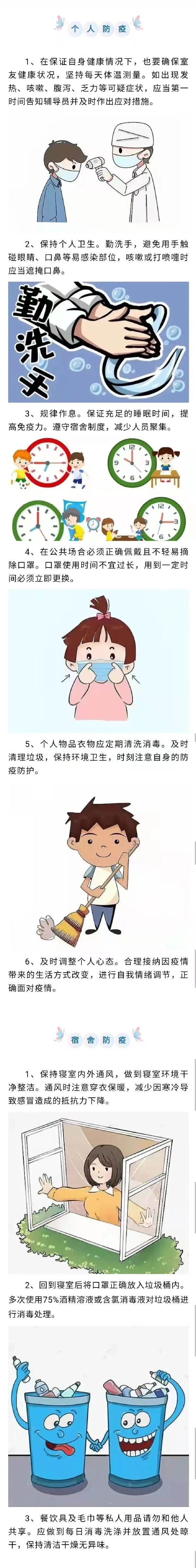 二、做好科学防疫,筑牢安全防线。团员青年要从严从紧从细做好各项个人防控工作,坚持“防疫三件套”,牢记“防护五还要”:继续坚持佩戴口罩、保持社交距离、注意个人卫生;牢记口罩还要戴,社交距离还要留,咳嗽喷嚏还要遮,双手还要经常洗,窗户还要尽量开。坚持每日健康登记,自觉加强健康监测和核酸检测,尽最大可能减少校外活动和交流,绷紧疫情防控这根弦。