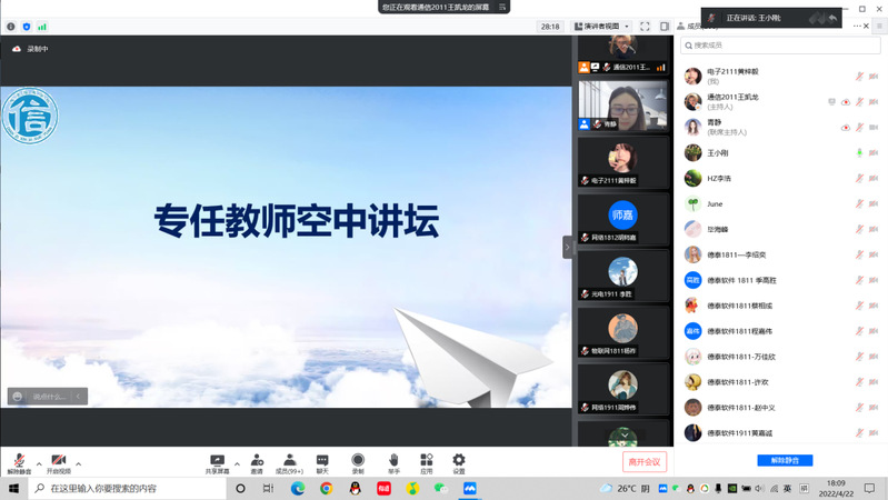 同时,他鼓励同学们加强与老师的沟通和交流,按时、按量、按质完成毕业设计;充分利用公司和公司搭建的就业资源,抓住一切就业机会、积极行动。此外,蔡经理还提到,集成电路产业拥有较好的发展前景,希望更多的大四学子能够投入到集成电路行业中,期待更多的大三学子提前进入企业,在岗位历练中提升求职竞争力! 2、空中讲坛 作为计算机科学与技术专业负责人,公司党总支第二党支部书记,王小刚老师一直热心员工工作、关注员工发展,向多家优质企业积极推荐员工。