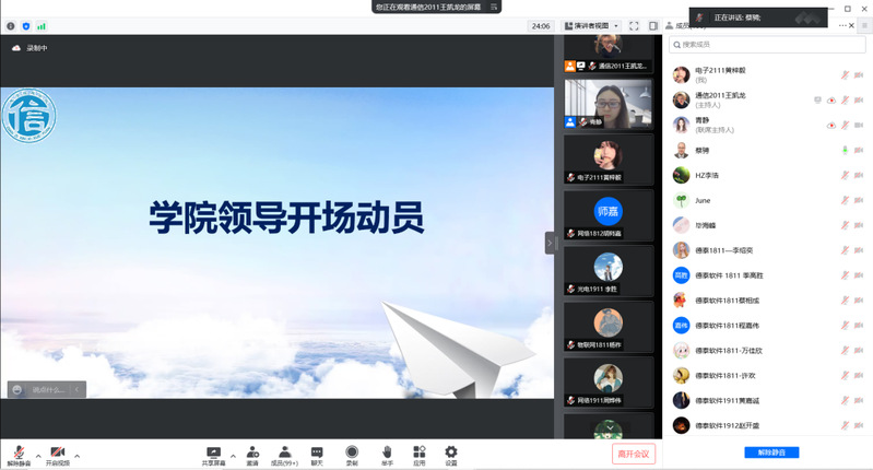 1、云端动员 从公司启动准封闭管理到现在,蔡骋经理已经在校坚守近2个月,和同学们同吃同住共抗疫情,时刻关注着每一位毕业生的身心状况和毕业去向。在开场动员环节,蔡经理向莅临本次活动、提供支持的专任教师、企业领导表示热烈的欢迎和诚挚的感谢。