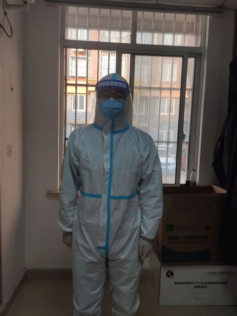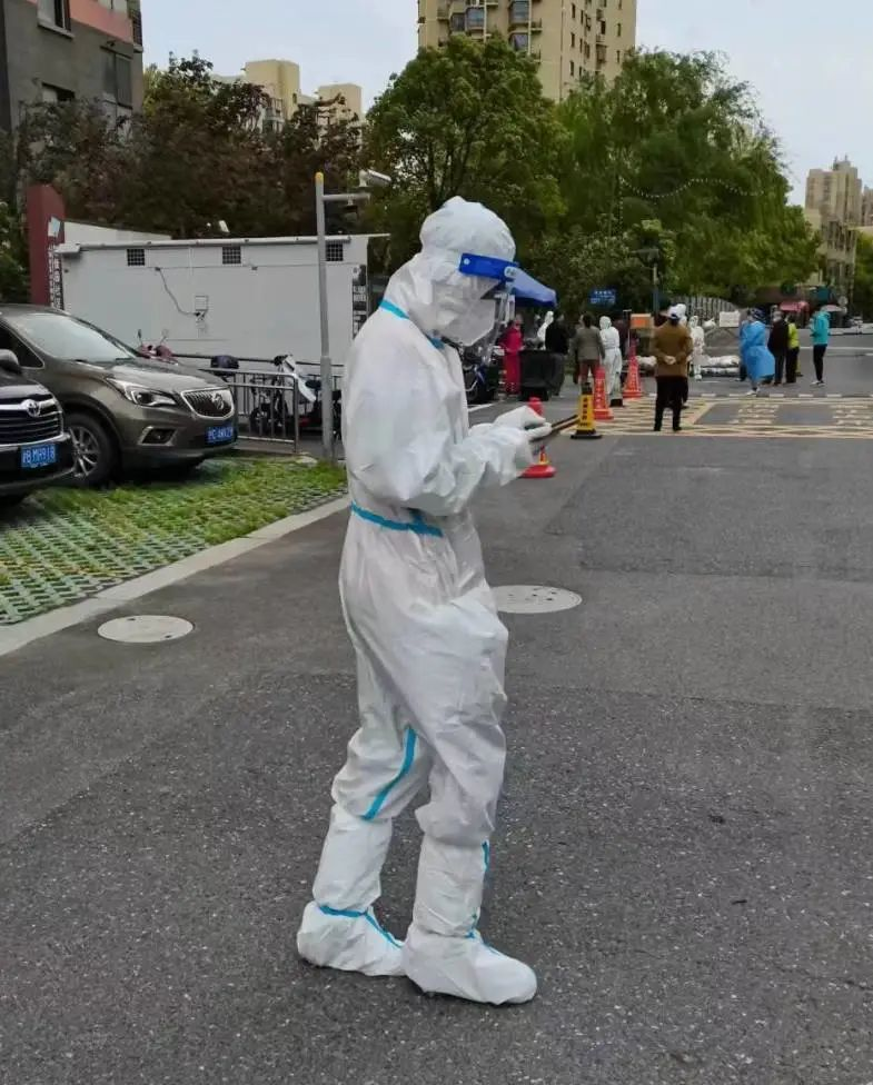 为了使大家安全、有序地做核酸,志愿者们于拂晓集合,或操场出入口,或围合院中,穿着厚厚的防护服,来回奔走提醒保持间隔、不断解说帮助登记,无畏疲惫,只愿你安。 长久的站立与大声呼喊让志愿者们感触颇深:终于切身体会到“大白”的不易,但作为青年老员工,我愿竭尽所能,与大家共克时艰。还有很多志愿者在校园各个防疫点站岗,维持校园秩序,以免出现拥挤、聚集现象,在雨天也坚持完成自己的任务。