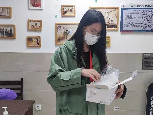 在网格化管理模式下,同学们也积极投身于楼层志愿服务中,协助核酸检测、分发抗原试剂、进行宿舍消杀……在志愿过程中她们不畏辛苦,保质保量完成任务。她们说:“虽然辛苦,但是值得”。