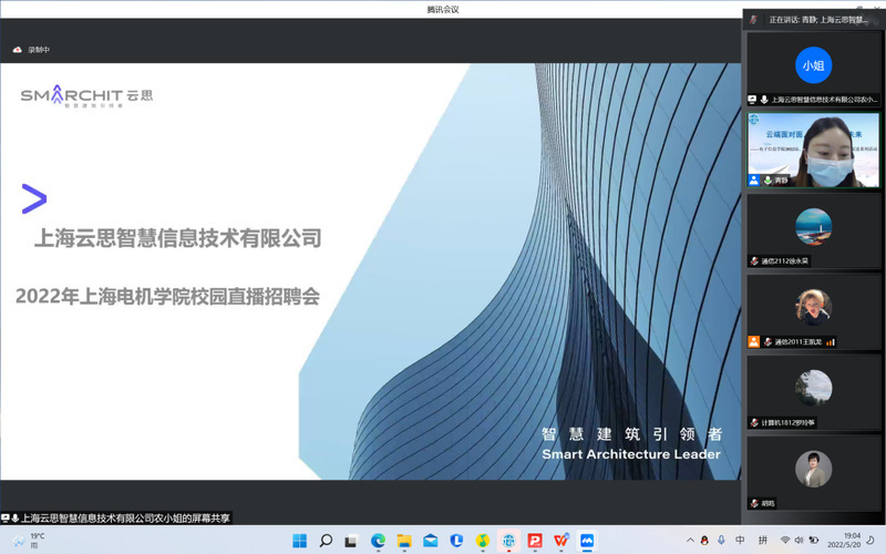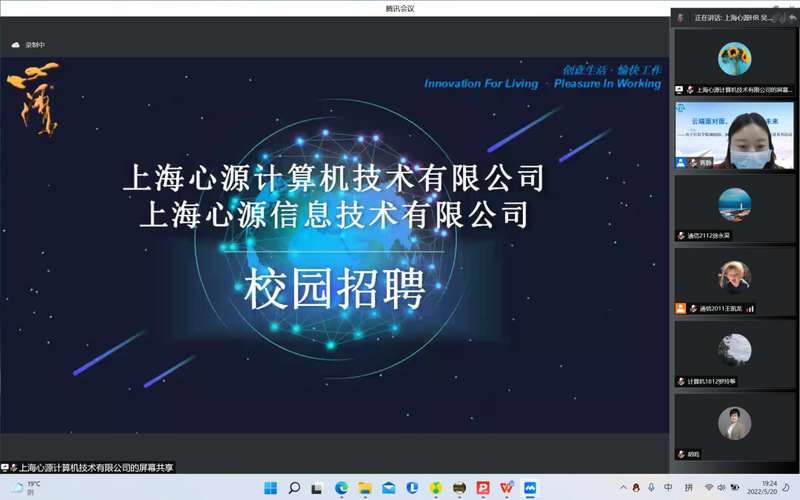 在企业直播带岗环节中,来自海通安恒科技股份有限公司,上海心源计算机技术有限公司,上海云思智慧信息技术有限公司,上海博弋信息科技有限公司,上海梦创双杨数据科技股份有限公司五家企业依次进行宣讲。云端对话框实时推送企业招聘信息,老师们和同学们的频繁互动将活动推向高潮。