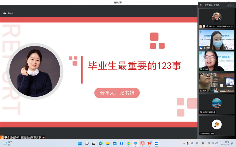 随后,张书娟老师以“毕业生最重要的‘123’事”为主题向2022届毕业生深刻剖析应届毕业生的重要身份和优势;着重强调毕业就业两手抓、抗疫求职两不误;温馨提醒重要证件、材料、手续要理清,为完成员工和职业人的角色转换做好充分的准备。