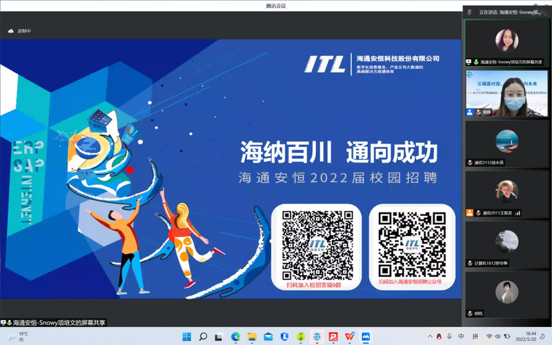 520,注定是一个浪漫且充满爱的日子,而与之一同到来的是“云端面对面,‘疫’起向未来” 第七期——402永利集团2022届、2023届毕业生毕业就业双促进活动。公司党总支副书记袁亮老师,学工办主任张书娟老师,企业领导代表,2022、2023届信息学子等200余人相聚云端,本次活动由辅导员青静老师主持。
