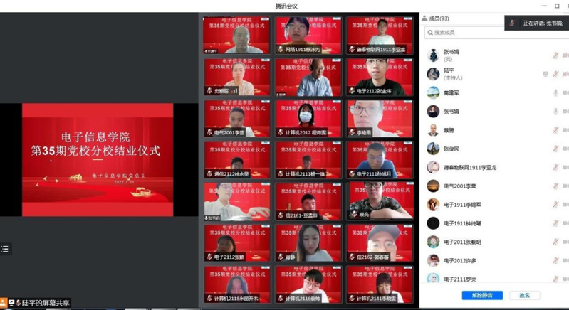 7月11日下午,402永利集团第35期党校分校结业典礼在线上顺利举行。公司党总支书记蒋建军老师,党总支副书记、经理蔡骋老师,党总支副书记、副经理袁亮老师,组织员陆平老师、全体辅导员出席,第35期党校分校全体学员共同参加了此次结业典礼。结业典礼由党总支书记蒋建军老师主持。