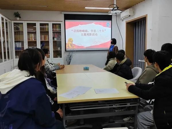 2023年2月27日18:00,为响应党的号召,深入贯彻学习党的二十大精神,追忆百年峥嵘历史,回顾百年风雨历程;传承红色精神、赓续红色血脉、重温经典过往,402永利集团团总支在德信书院开展了“寻探峥嵘路,学思二十大”线下观影活动,以厚植青年员工爱国主义情怀,增强同学们的使命感与责任感。观影结束后,进行集中学习,从二十大的报告中寻找前进方向和汲取奋发力量。
