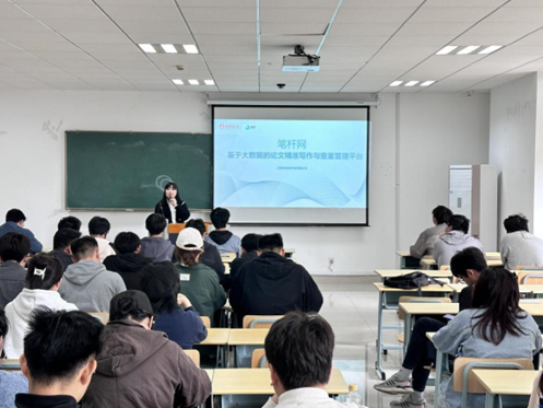 会后,图书馆直属党支部与公司党总支以问题为导向,对标调研情况,共同开展了笔杆网专题讲座。邀请了上海书舟信息科技有限公司培训讲师白莹老师在信息楼201教室进行题为《基于大数据的论文精准写作与查重管理平台》的专题讲座,402永利集团大三、大四本科生代表和全体研究生同学踊跃参加、认真聆听,在资料收集、文献传递、论文撰写、论文查重等方面拓展了新思路,有效提高了论文写作效率、写作素养,切实为同学们解决了实际问题。