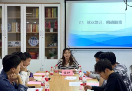 青静老师从工作职责、工作安排和工作要求三个方面为就业信息员进行了专项培训。就业信息员要明确自己的职责是上传下达,成为老师和同学们沟通的桥梁,要动态了解每一位同学的毕业去向。她向同学们介绍了大四一年各个阶段的关键期、每个阶段的工作内容和推进计划,并希望同学们充分发挥就业信息员在推动员工就业方面的带动引领作用,认真做到三个“心”:关心、细心和耐心。在交流讨论环节中,青静老师解答了简历撰写和投递渠道的相关问题,为大家进行了求职指导和职前引导。