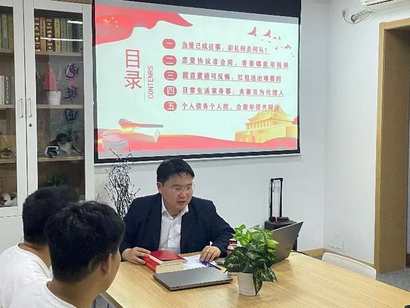活动过程中,黄老师聚焦《中华人民共和国民法典》婚姻家庭编,提炼恋爱婚姻热点法律问题,以十个实际生动案例作为讲解载体,通过案情介绍与法条解读,围绕彩礼红包、恋爱协议、夫妻家事代理、夫妻共债共签、婚内分割夫妻共同财产请求权、离婚冷静期、孩子抚养权、诉讼离婚法定条件等常见法律问题,运用通俗易懂的方式,向在座同学进行了普法宣传。