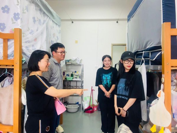 老师们一同走访员工宿舍,与研究生同学进行亲切交谈,了解同学们的学习情况和日常生活。走访后师生一同落座36宿党团活动室进行师生交流。其中,研究生代表提出:在加强对研究生的职业规划和职业生涯指导;增设研究生和本科生科创需求对接平台;加强同学们对专业演讲能力的重视等方面发表建议。领导们耐心倾听同学们的诉求,对研究生同学们提出的问题进行深入探讨,并一一给予回应。