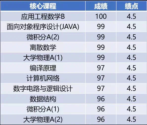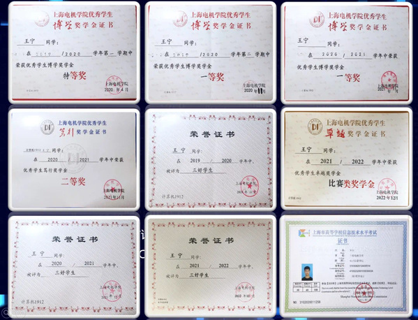 当然,能获得这么多的荣誉也离不开对专业基础知识的深入学习。知识是支撑一切梦想和信念的力量,入学以来,我的平均成绩达到90分以上,多门核心课成绩均在96分以上。平均绩点4.06分,专业排名第一。凭借优异的学习成绩,我曾获得国家奖学金、校博学奖学金特等奖、笃行奖学金一等奖、卓越奖学金和三好员工等荣誉。并且还获得了上海市计算机等级考试满分C语言证书。这些都为我的追梦之路打下了扎实的基础。