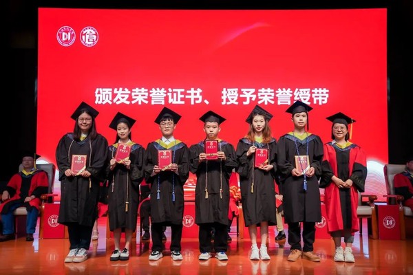 李靖超副经理为优秀毕业生代表颁发荣誉证书,佩戴荣誉绶带,希望同学们再接再厉,在新的征程里不忘初心、努力奋斗,创造出新的辉煌。