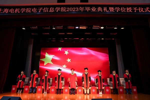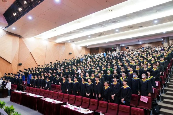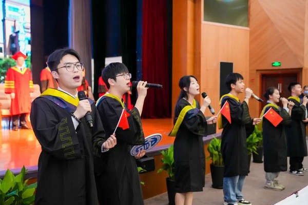上午10点,在观看暖场视频《跃入人海 扬帆起航》后,毕业典礼在庄严的国歌中拉开帷幕。