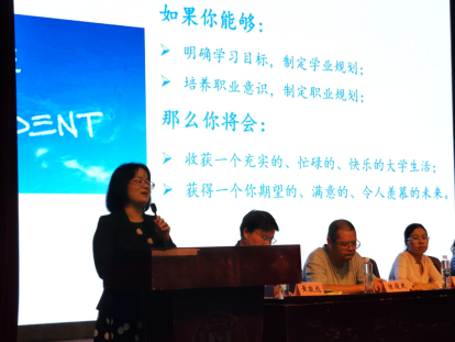 随后,张书娟老师以“同‘信’同行,共促成长”为主题,结合详实数据和典型案例介绍了公司在促进员工发展方面所做出的努力和取得的成绩,从大学学什么、大学怎么学两个方面向全体新生介绍了大学学习的特点、应关注的重点以及要克服的难点,帮助新生尽快适应角色转变、尽快制定四年学业以及职业规划。