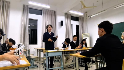 首先是正方辩手的开篇立论,现场的气氛被辩手洪亮的声音一次次推向高潮。经过评委们集中讨论,最终国贸2321获胜。