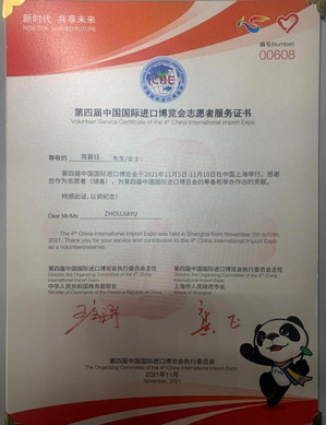 作为一名中共预备党员,她一直用实际行动体现党员的先锋模范作用。她积极投身各类志愿公益活动,官网志愿服务时长313.5小时。她参加了第四届、第五届进博会志愿服务,获中国农网、农民日报报道;在上海疫情防控阻击战中,她毫不犹豫冲锋在前,加入抗疫志愿者的行列,获评“优秀抗疫志愿者”称号;参加“GAPWEEK”暑期线下实践活动获“长城守护者”称号;她还担任新生班级志愿者、班主任助理,参加造血干细胞捐献入库,多次参加中海博、天文馆志愿项目等。以星星之火,散发自己的光和热。