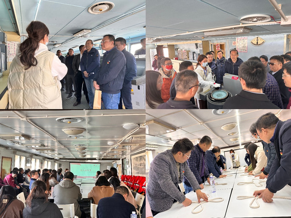 “逐星揽月天涯追踪”功勋远望测量船宣讲会上,讲解员向大家介绍了“远望1”号的建造背景、命名插曲、发展历程等,让党员全方位了解了测量船的历史和功绩。最后,大家共同学习救生结、称人结等应急绳结的系法,感叹水手的智慧结晶。