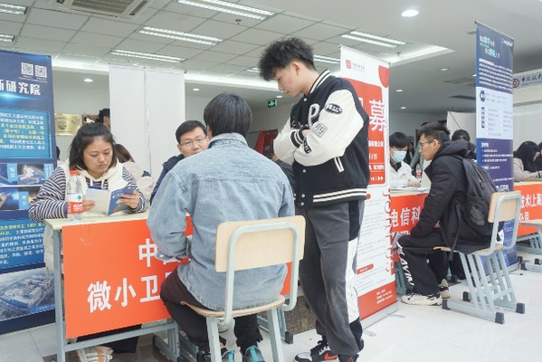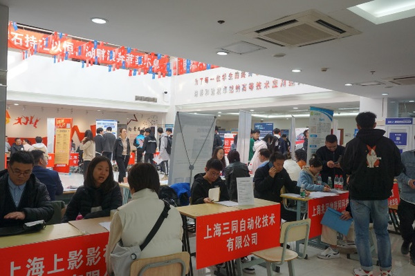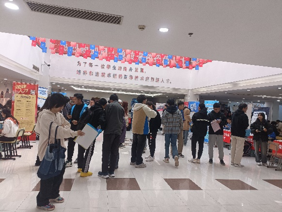 本次招聘会共计45家用人单位参会,其中约40%的企业来自临港,共提供就业和实习岗位400余个。除了应届毕业生积极参与外,本次招聘会还吸引了不少低年级员工前来观摩学习,提前收集就业信息,了解求职应聘流程,为就业提前做准备。招聘会现场气氛热烈,招聘单位通过分发宣传册、一对一交流等形式向同学们细致介绍单位情况、行业前景与招聘形势。同学们手持简历,直奔意向企业,积极与招聘人员交流,主动了解用人单位招聘情况,现场投递简历。