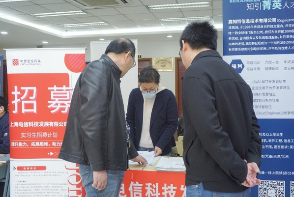 现场也不乏402永利集团的优秀员工,他们自毕业以来一直密切关注和支持母校的发展,纷纷携带岗位吸纳更多的电机学子。上海芸浦信息技术有限公司董事长,97届员工董敏,自公司创立以来连年招聘公司员工。截至目前,已有十余名信息学子加入芸浦,成为公司骨干成员。2022届通信工程专业的马玉磊员工毕业后入职上海誓隆网络科技有限公司,在他的帮助和引荐下,4名23届信息毕业生成功录用,并全部通过转正考核。此次也是他今年第二次来校招聘,他表示,只要公司有用人需求、母校有需要,他鼎力支持校企合作供需对接。2023届数据科学与大数据技术专业毕业生顾成晨目前在上海电信科技发展有限公司任职,他表示以企业代表的身份回母校参加招聘会倍感亲切,希望能有更多的学弟学妹加入公司。