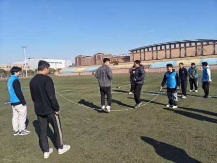 团结,配合,默契,前进。两个人三条腿,乃至五个人六条腿,绑带绑得住迈出的脚步,绑不住同学们前进的心。呼号和步伐交织共鸣,在操场的上空回响,脚步从不停歇,向着心中的目标。运动员的热情和投入,让大家看到了运动的力量和魅力。每一位参赛者都全力以赴,发挥出自己的最佳水平。让大家更加深入地感受到运动带来的快乐,也能通过比赛加强同学们的团队合作精神。