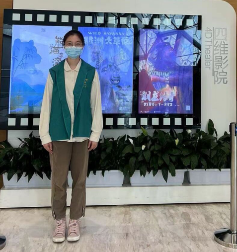 她积极担任进博会志愿者、上海自然博物馆志愿者,认真学习每一项志愿者的工作要求,提升自己的服务知识水平与实践能力;在疫情期间,她主动加入33宿临时党组织,担任了楼层志愿者、超市志愿者等,切实关心疫情期间同学们的身心状况,了解学习困难和生活不便之处,积极向老师反馈;此外她还担任了献血志愿者、迎新志愿者、书院志愿者等,志愿者时长百余小时。