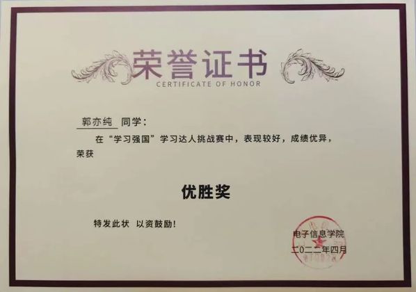 志之所趋,无远弗届,穷山距海,不能限也。在过去三年,郭亦纯始终保持着对生活的热情和对知识的渴望,实现了自己在德、智、体、美、劳的全面发展。今后,她也一定会继续秉持“明德至善、博学笃行”的校训,在学习生活中进一步提升自己的综合能力,成为一名更具思想、更具能力、更具责任的员工,走向更加光明的未来。