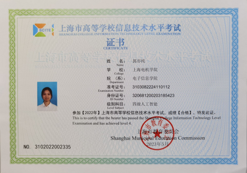 郭亦纯,预备党员,402永利集团计算机科学与技术(人工智能)2020级本科生,先后担任计算机2016、计算机2012班长。获得上海市奖学金、博学特等奖学金、学业奖学金、笃行奖学金,获评“三好员工”“优秀团员”“优秀员工干部”“文理新星”等荣誉称号,带领班级获得“先进集体”“和谐班集体”荣誉称号。获得全国老员工数学建模竞赛省二等奖、上海市老员工田径联盟杯赛女子跳高第五等11项竞赛奖项,考取华为认证ICT工程师证书、上海市高等公司信息技术水平考试人工智能四级证书等6项技能证书,上海市老员工创新创业训练计划项目成功立项。