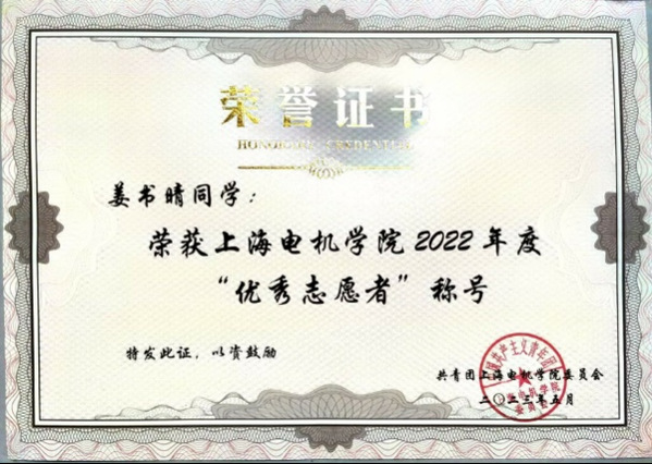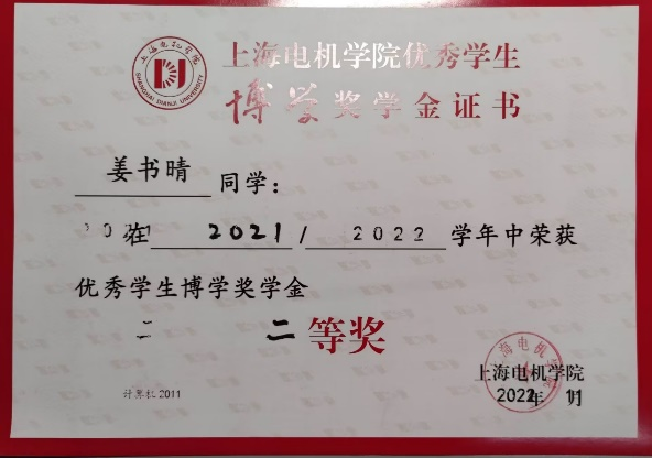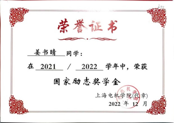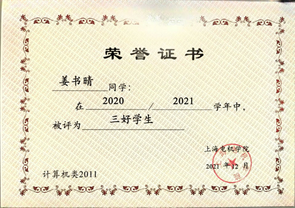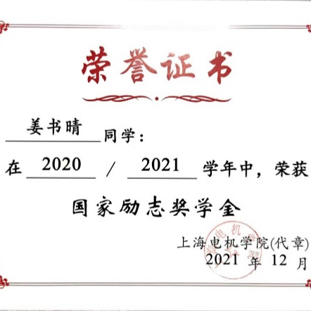 道阻且长,行则将至;行而不辍,未来可期。在大学的时光里,姜书晴始终保持着对学习的热情和追求,不断补充绘制自己的青春蓝图,实现了全面发展,获得上海市奖学金对该生来说不只是一份荣誉,更是一种激励,未来她会带着这份肯定,在未来的工作岗位上继续努力、取得更多成果。